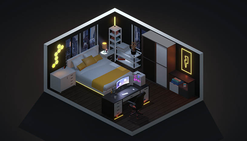 种类繁多的家具家具、电脑及其配件、海报、画作、植物和其他室内装饰细节等着你去布置卧室。